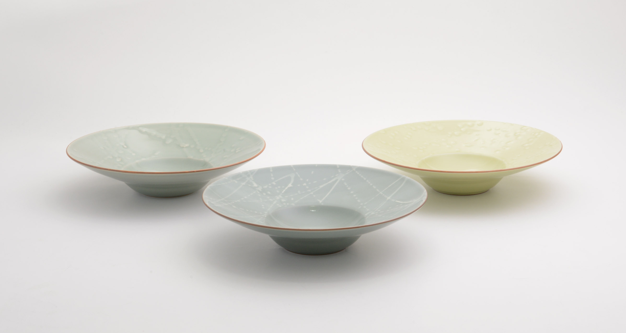 こうしてお互いの伝統技術を合わせ、他に類をみない、新しい青磁の表現をしています。
